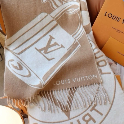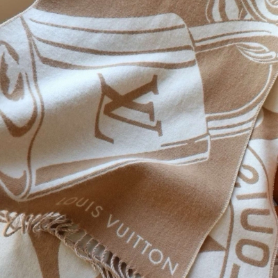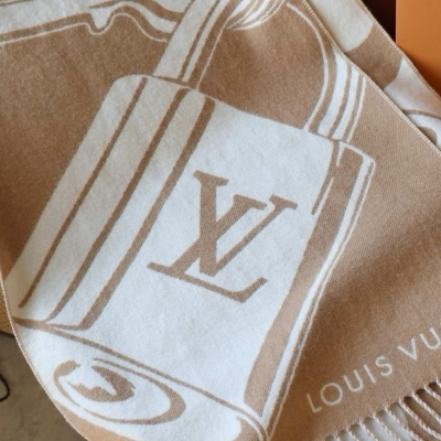 Lock And Keys 围巾取材舒暖毛绒混纺针织,一面描绘 LV 挂锁和钥匙图案,反转即现 Louis Vuitton Trunks 圆章,以妙趣笔触回溯品牌制箱传承。