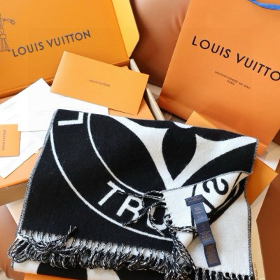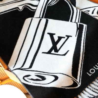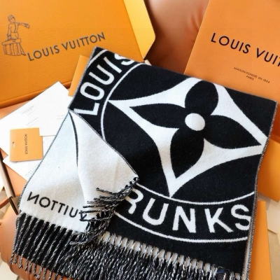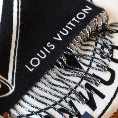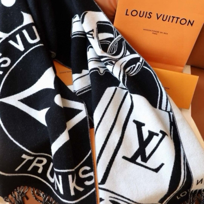Lock And Keys 围巾取材舒暖毛绒混纺针织,一面描绘 LV 挂锁和钥匙图案,反转即现 Louis Vuitton Trunks 圆章,以妙趣笔触回溯品牌制箱传承。