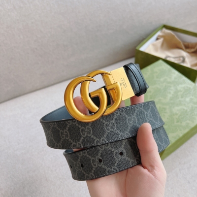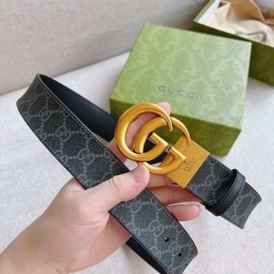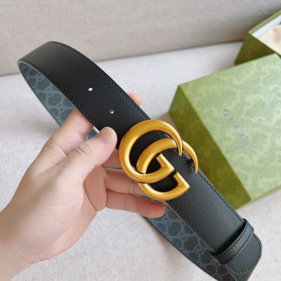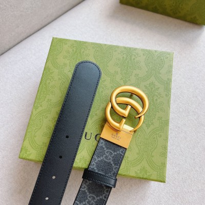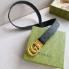 GUCCI 古驰 这款双面皮革腰带巧妙融合GG Supreme帆布与黑色皮革材质,经典配色演绎历久弥新的实用设计理念。富有辨识度的双G配件再现典藏搭配,诠释当代设计。带来更多丰富造型;宽度:37mm