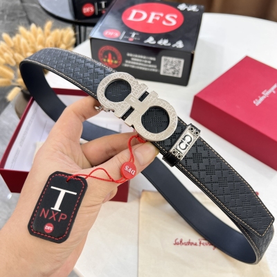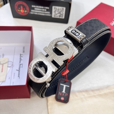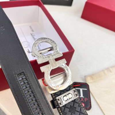 实物拍摄,菲拉格慕自动系列男士皮带,ZP开模制作 8字斜切纹穿精钢五金,商务皮带 ,进口小菲拉格慕编织花纹头层牛皮 ,自动划牙,宽度3.5 cm。 顶级质量支持验货,品质如图,认准免税店包装防伪NXP 芯片感应入官网,