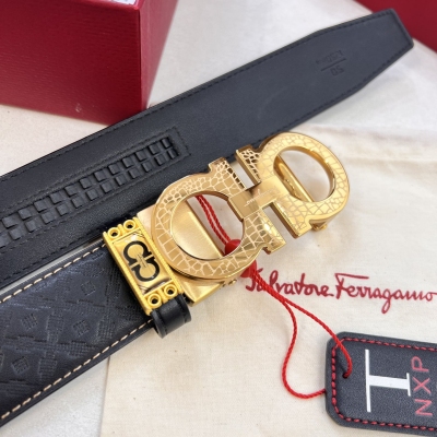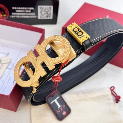 实物拍摄,菲拉格慕自动系列男士皮带,ZP开模制作 8字斜切纹穿精钢五金,商务皮带 ,进口小菲拉格慕编织花纹头层牛皮 ,自动划牙,宽度3.5 cm。 顶级质量支持验货,品质如图,认准免税店包装防伪NXP 芯片感应入官网,