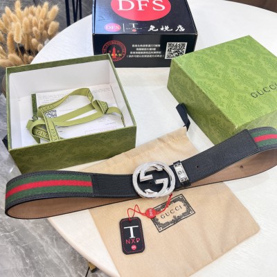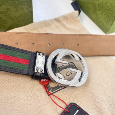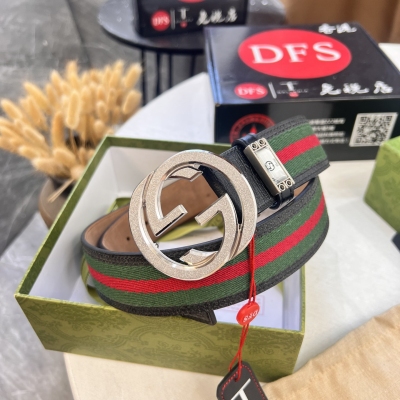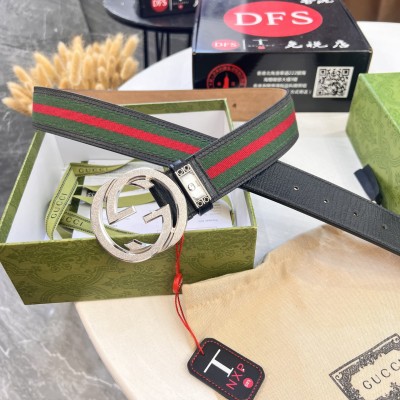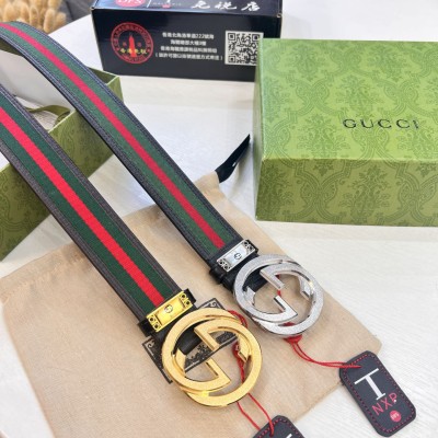 GUCCI 古奇,香港免税T礼盒🎁可识别包装二维码,香港特区地址,G大饼间色五金新款五金,🐂🐂意大利🇮🇹进口正版红绿面料接皮工艺. 磨砂头层树膏低,秋冬正装男士甄选腰带、品质支持专柜验货,3.8宽度,热买新品👍🏻