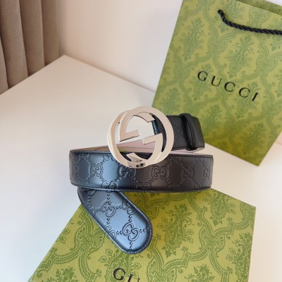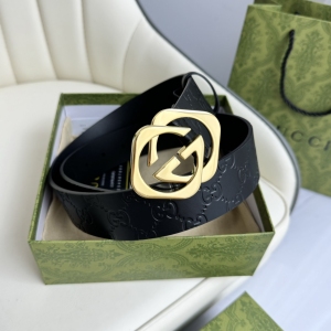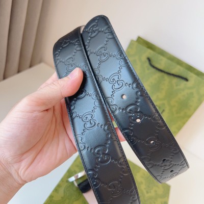 GUCCI 互扣式双G带扣腰带,采用热压印技术的Gucci Signature皮革精制而成,触感厚实,印花图案清晰分明。时尚经典百搭款;皮带宽度:4.0cm