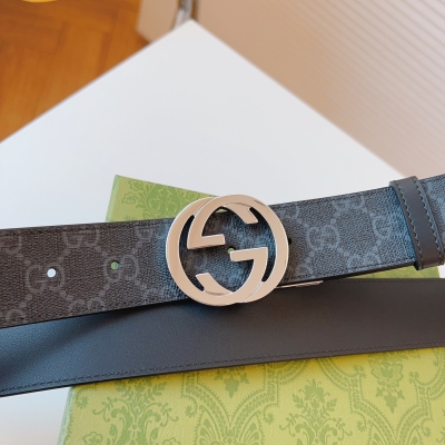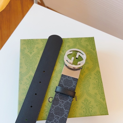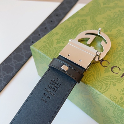 GUCCI 这款双面皮革腰带巧妙融合GG Supreme帆布与黑色皮革材质,演绎历久弥新的实用设计理念。富有辨识度的双G配件再现典藏搭配,诠释当代设计。皮带宽度:37mm