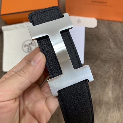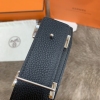新款出货,原版品质,带身3.8cm宽。采用双面荔枝纹头层牛皮皮料制作。搭配精品H钢挂扣(带身双面使用)。商务休闲实用搭配款式。