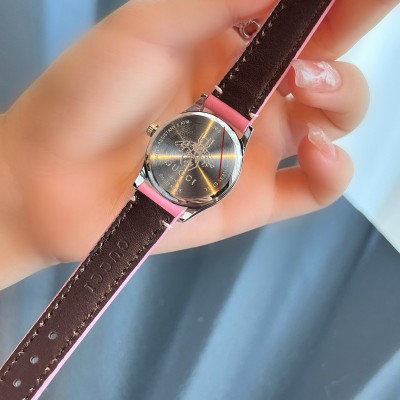 迷你小号28mm 原厂开模最新款Gucci古驰G-Timeless系列,毫米石英女表,传统的中国红喜庆款、以全息图效果打造三维立体感,让人一见倾心、目光难移。表面特别饰有Gucci标志造型蝴蝶标识图案——以悬浮的全息图效果,真的与众不同,还采用蓝宝石水晶玻璃表镜,内侧带防反射涂层;手表防水深度达50米。色彩丰富的表带着时尚的风潮。搭配精钢插针式表扣,适合所有腕部尺寸 (150毫米至192毫米),配全套包装。蓝宝石玻璃、316精钢表壳,Gucci代表性的压花皮不仅用于表带,也流畅地延伸到表面上。蜜蜂造型和Gucci标识均设于12点钟位置,设计独特。小牛皮表带紧贴手臂,