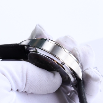 【表壳】腕表尺寸42mm 采用316精钢表壳 顶级拉丝纹理清晰细腻,高端具备的拱形蓝光玻璃镜面