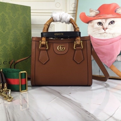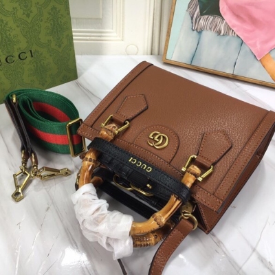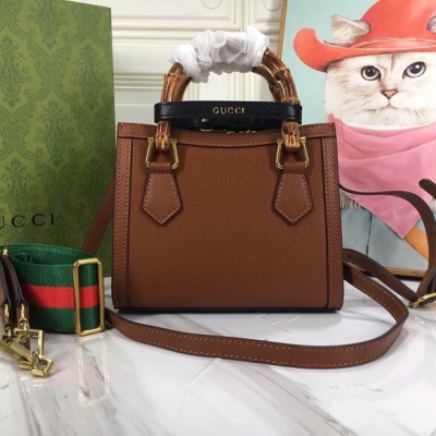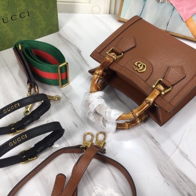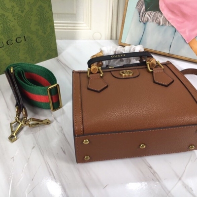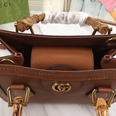 Diana竹节系列迷你托特包,棕皮皮革融合了竹节提手与双G金色调配件具有辨识度的元素,附带2条黑色装饰提手扣带,搭配双肩带~款号655661/702732🎈🎈🎈尺寸:20x16x10cm,📢📢📢