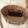 升级原版🔥双面可用🔥M12096 M12257 M11947 M40995 购物袋系列 neverfull中号手袋-探索袋内精致细节。重新设计的内袋采用了清新的织物内衬和灵感源自档案馆的复古细节,尤其值得称道的莫过于可脱卸式拉链手包,它既可单独作为一只精致手拿包使用,亦可作为额外的口袋。 明快的内衬色调为 monogram 经典帆布增加了更多活泼生动之感 尺寸::32x29x17cm。