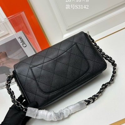 小香Cf有着别样的大双C新风格新味道🧚♀️它的撞包率不会高!小牛皮鱼子酱质感 皮实 耐磨耐造 目测将会又是一款爆款经典豆腐包🤩本仙包自重虽很轻 但很能装 随性中又有知性美!尺寸:26×16×8,款号S3142