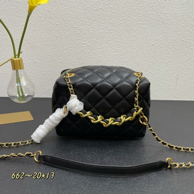 最火爆的小香家❤️!据说是小香最难的工艺之一,可见这款包还非常有市场价值~🌟!牛皮,皮质很细腻柔绒,加上香家常用的链条作装饰点缀让人眼前一亮。包的形状方正实用,没有多余的边边角角,超耐装,化妆品和手机,能想到的都往里面塞吧!款号662,尺寸20*13*10