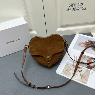 新款COCCINELLE可奇奈尔斜跨包,磨砂皮配牛皮,型号H03310、尺寸:21X19X8CM