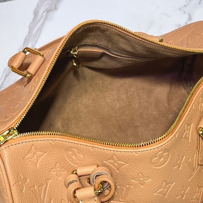 升级原版 M47186 M11323 M40391 本款 Speedy Soft 30 手袋焕新 Speedy 手袋的经典设计,以 Monogram Empreinte 皮革和绒面牛皮革内衬塑造轻盈柔软的构型。无论手拎、斜挎或肩背,均可打造潮流造型。尺寸:30x21x17厘米