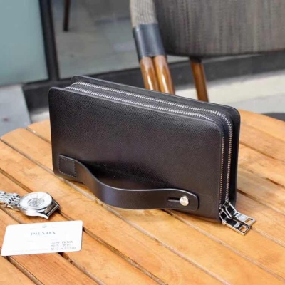 【Prada 】双拉链普拉达手包 2023年秋冬新款专柜同步 原单品质 进口牛皮 原厂五金 精致走线 版型超正 细节完美(型号:632250,规格:22x13x4.5cm)