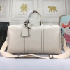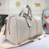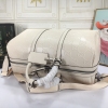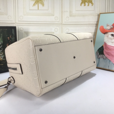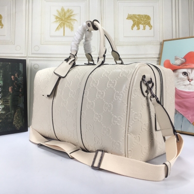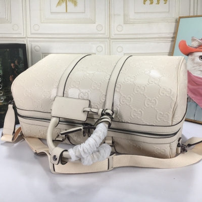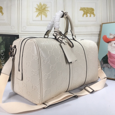 2021早秋推出新款旅行包,GG图案,在白色通花皮革上巧妙融入织纹和品牌标识压花。GG皮革质感柔软且略带光泽感,在精心设计后制作成这款旅行袋,包身配有行李牌、锁扣、双提手和可拆卸肩带等丰富细节。