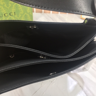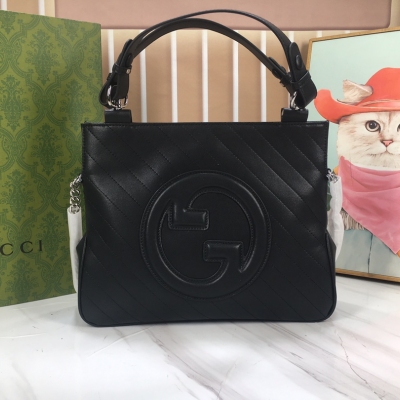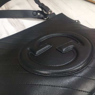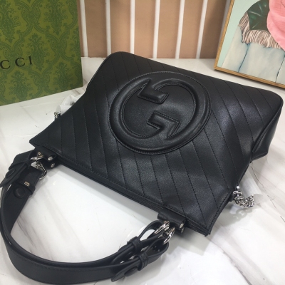 ❤️❤️💛💛Gucci Blondie系列小号托特包,黑色圆形互扣式双G皮革贴饰,棉麻里衬,配有皮革提手和链式肩带,款号751518克皮,尺寸24X30X6