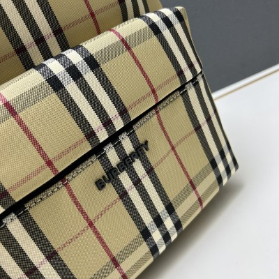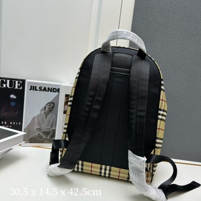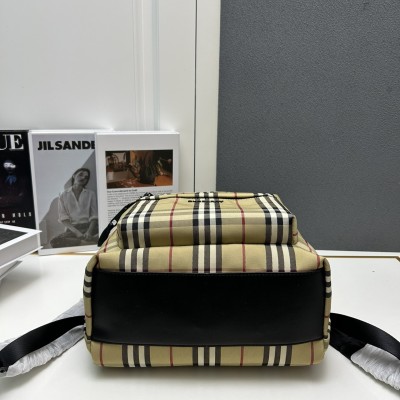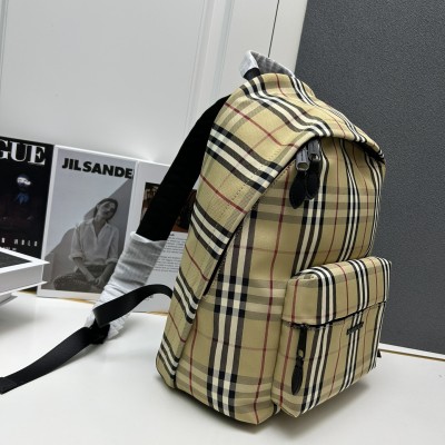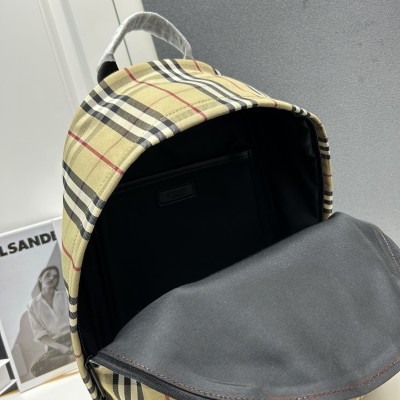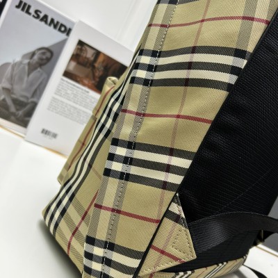 B家尼龙双肩包,装饰精纺 Bur格纹。内部空间充裕,设有皮革饰边和后侧绗缝裁片,缔造舒适佩戴体验。