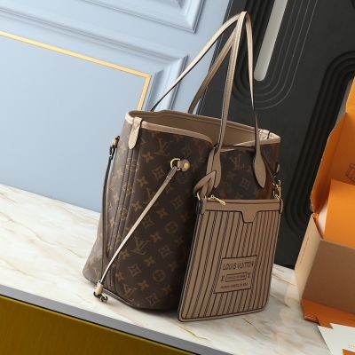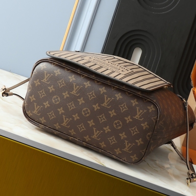 LV升级原版🔥双面可用🔥M12061 M11946 M12099 M40995 极具传奇色彩的neverfull中号手袋: 总是能够满足您对手提包的各种需要。 容量大却不显笨重,挺括而手感柔软,居家出行皆宜。 束紧侧边系带,立刻变身为一款时尚的都市手袋。 松开系带,又变成一款别致而实用的手提包。 细长的皮革手柄既宜肩背,亦可挽拎于臂间。 此处显示的此款以 damier azur 帆布制成。尺寸:大31x28x14,小25x16x10