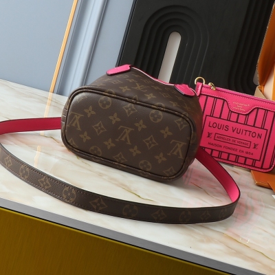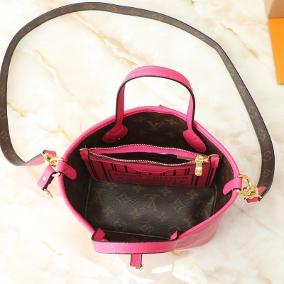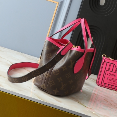 LV/棕色老花配玫红色双面手袋