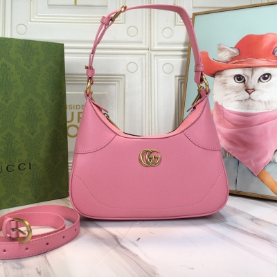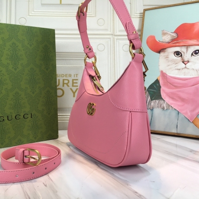 GUCCI/粉色半月形手袋