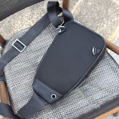 【中古款 胸包】本款采用 原厂荔枝纹头层牛皮 ,释放英朗气度。帆布肩带及内衬为品牌经典注入可持续理念,拉链前袋和顶部小号拉链袋再添实用细节。 涂层帆布一牛皮革饰边一织物内衬一主隔层一拉链前袋一两大主层拉链袋一肩带不可拆卸,可调节!!型號:520-4;尺寸:30x18x7CM