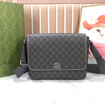 GUCCI/灰色黑色帆布邮差包