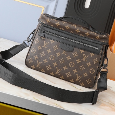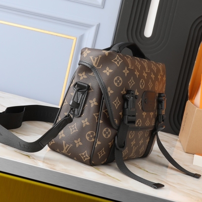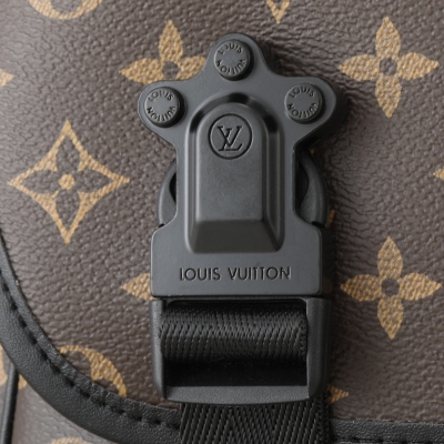 LV 升级原版 M46972 M46973 本款LV Trail邮差包向品牌元素果搬灵感,为经典Manogram Macassr帆布融入标识肩带和硬箱风格快拆式搭扣,可随心转换背携方式。充裕空间方便收纳个人用品。尺寸:31 × 22 × 11 cm