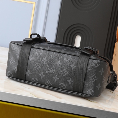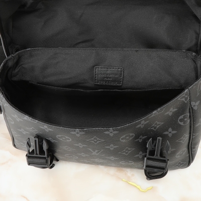 LV/升级原版 M46972 M46973 本款LV Trail邮差包向品牌元素果搬灵感,为经典Manogram Macassr帆布融入标识肩带和硬箱风格快拆式搭扣,可随心转换背携方式。充裕空间方便收纳个人用品。尺寸:31 × 22 × 11 cm