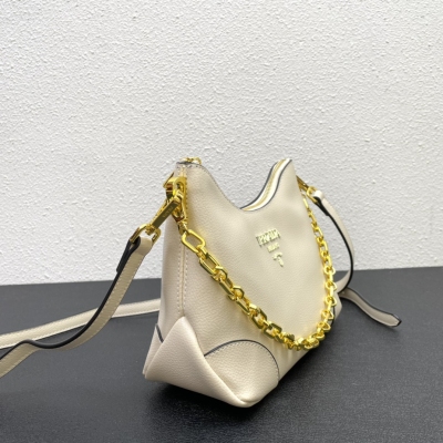 新款首秀PRAD爆款之王(皮肩带+肩挎链条),时尚绚丽又具备实用性的牛角包🥐集齐了复古与时尚完美融合,不仅在颜值上玩出新高度,容纳量也是非常人性化,包身不大,日常所需要的大容纳空间,它都能满足于日常,而且可拆卸可调节的肩带设计,能够让日常凹造型的选择更多,链条的搭配,让整个包增加了优雅元素,链条的设计,让整个包秒变腋下包,心目中的王牌首选品💪