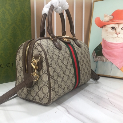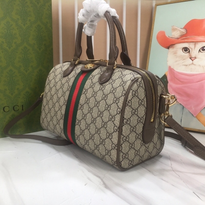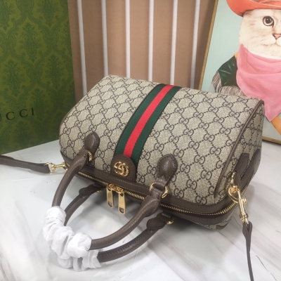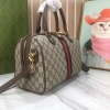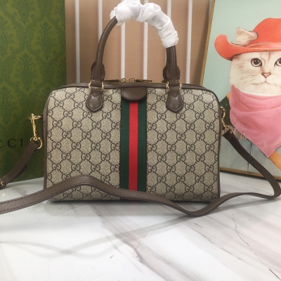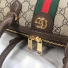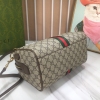 ❤️❤️💛💛Ophidia系列GG手提包,米色/乌木色GG搭棕色皮革,配有可拆卸式皮革肩带,棉麻里衬,款号772061啡,尺寸26.5X17.5X14