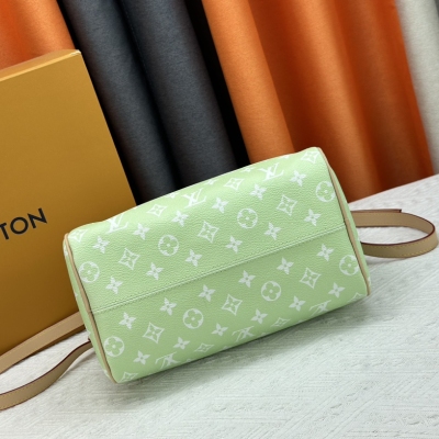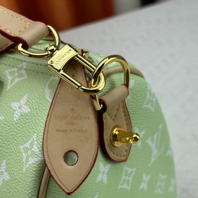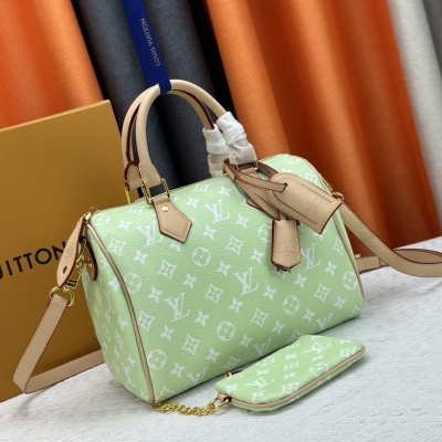 M24425 M24424本款 Speedy P9 Bandoulière 25 Monogram Leather 手袋选用柔软牛皮革,以 Monogram 图案重现帆布印花的考究观感。耀目金属件、羊皮革内衬和铭牌共同印证创意总监 Pharrell Williams 对细节的不懈追求。尺寸:25x15x15
