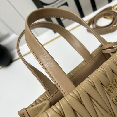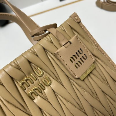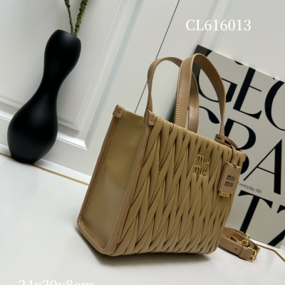 【MiuMiu缪缪】新品托特手袋,采用进口小羊皮,华丽Matelasse工艺重释软羊革托特包活力而百搭的都市风廓形,赋予包身纹理质感的工致立体效果,复古磨砂五金,全新logo挂件,皮革提手,可拆卸肩带和内部口袋塑就功能性摩登设计,容量可观:型号CL616013 尺寸:24X20.5X8cm