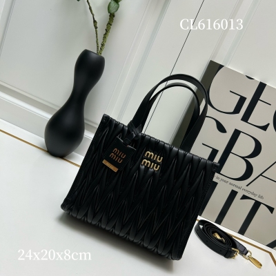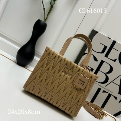 【MiuMiu缪缪】新品托特手袋,采用进口小羊皮,华丽Matelasse工艺重释软羊革托特包活力而百搭的都市风廓形,赋予包身纹理质感的工致立体效果,复古磨砂五金,全新logo挂件,皮革提手,可拆卸肩带和内部口袋塑就功能性摩登设计,容量可观:型号CL616013 尺寸:24X20.5X8cm
