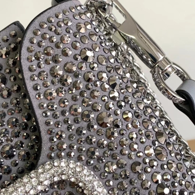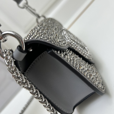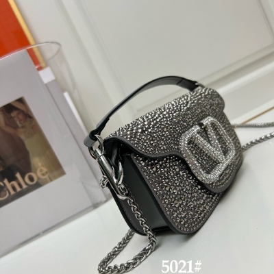 🆕🆕VALENTINO GARAVANI Mini Loco手袋饰有施华洛世奇仿水晶✨✨和VLOGOSIGNATURE磁扣。得益于可拆卸提手和滑动链条的设计,手持、肘挎、斜挎和肩背可随心切换。