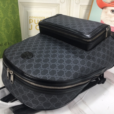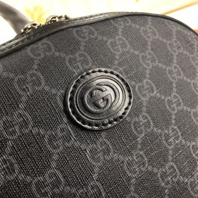 💛💛❤️❤️互扣式双G椭圆形皮革背包,黑色GG搭配黑色皮革滚边,棉麻里衬,款号704017克PVC,尺寸31.5xX41X14.5,