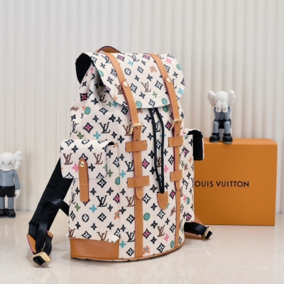CHRISTOPHER 小号双肩m41379此款Christopher小号双肩包具有登山包式的硬朗气质。M46814橙色 m46813蓝色 老花橙色皮 老花蓝色皮盖头男士背包双肩包登山包oo[握手][握手]标志性Monogram帆布搭配精选鳄鱼皮,相得益彰,适合日常工作或休闲娱乐时背携。