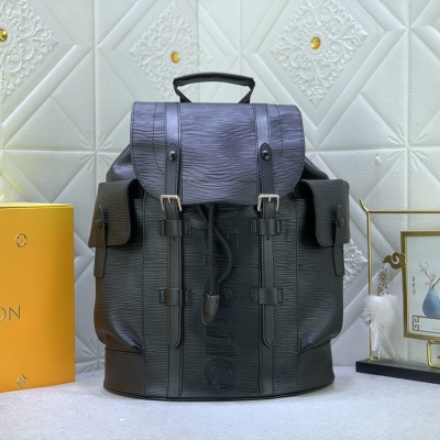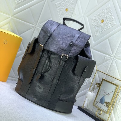 LV/升级原版 M41709 M41379 本款Supreme联名系列 限量版水波纹Christopher双肩包是一款外观充满力量,适合户外活力的多功能日常包袋,内部空间非常充裕。 风格诱人,品位上佳。规格:34cm*13cm*47cm,颜色:黑色