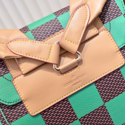 Damier Pop涂层帆布天然牛皮饰边纺织衬里金色金属件翻盖设计